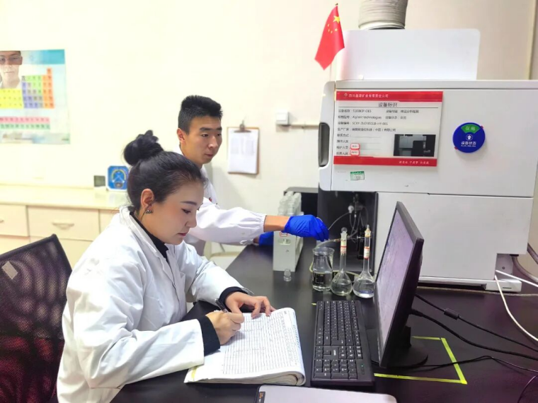 在鑫源矿业公司化验室,阿却、赵长军身着洁白的实验服,专注于手中的工作,他们一人仔细记录实验数据,一人精心操作仪器,用严谨态度和认真负责的精神,践行“国庆我在岗,质量在我心”的承诺,以对科研质量的执着追求,为保障产品质量发展贡献力量。